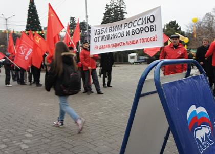 Орала музыка, стараясь переорать встречу семи кандидатов в депутаты Госдумы от КПРФ, а также кандидатов от ЛДПР, «Справедливой России» и других оппозиционных действующих депутатов Госдумы и Законодательного Собрания Ростовской области с избирателями – всего лишь через дорогу, Большую Садовую, у полпредства Президента РФ.
