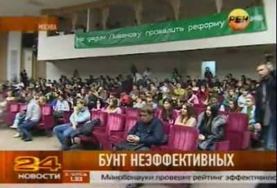 Телеканал РЕН ТВ рассказал об акции протеста студентов РГТЭУ против политики министра от "Единой России" Ливанова. В репортаже упоминается о встрече бастующих студентов с депутатами фракции КПРФ в Госдуме Василием Иконниковым и Казбеком Тайсаевым.