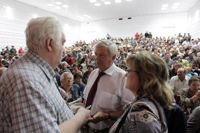 - Намного острее, - отметил В.И. Кашин, - в России сегодня стоит проблема продовольственной безопасности, десятки миллионов гектаров плодородной земли заброшены, труд крестьянина оценивается в 10-15% от стоимости сельхозпродукции (в развитых странах – до 50%). И в то же время могут быть уничтожены знаменитые воронежские черноземы, являющиеся эталоном почвы, о которой мечтают в десятках стран. Вместо развития сельского хозяйства, промышленности властью продвигаются новые прожекты добычи на народных землях сырья для того, чтобы появилось два-три новых долларовых миллиардера. Это не правильно. Допустить этого нельзя!» (Бурные аплодисменты).