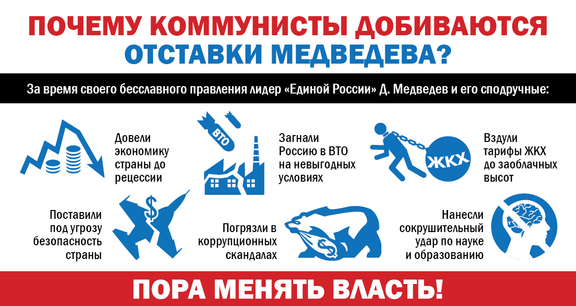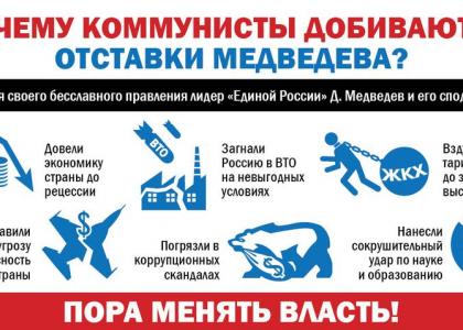 Напомним, что 8 июля в информационном агентстве «Интерфакс» состоялась пресс-конференция лидера народно-патриотических сил Г.А. Зюганова, посвященная инициативе коммунистов по отставке правительства. В ходе общения с журналистами Председатель ЦК КПРФ и его соратники озвучили 10 ключевых причин, по которым кабинету министров Медведева предлагается вынести всенародный вотум недоверия.