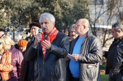 От КПРФ на митинге выступили первый секретарь Сочинского горкома КПРФ Игорь Васильев. Слово на митинге получили также члены бюро Сочинского городского отделения КПРФ – известный в городе политик Юрий Дзагания и правозащитница Елена Диденко.
