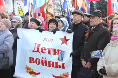 Таким стал лейтмотив митинга в Ярославле, прошедшего 11 марта. Инициатором акции стали ветеранские организации. Ярославская областная организация КПРФ приняла в митинге самое активное участие. Она стала единственной, установившей на Советской площади, где проходил митинг, свою палатку. В ней активисты провели сбор средств для поддержки патриотов Украины. В ходе этого и прошедших митингов коммунисты Ярославля собрали более 40 тысяч рублей.