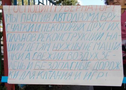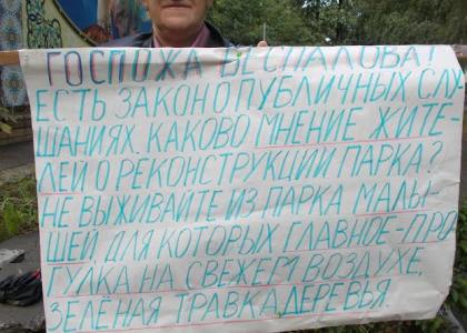 Чиновники вновь вынудили граждан выйти на акции протеста. У входов в парк проводятся одиночные пикеты. Пикетчики высказывают серьезные претензии к губернатору Морозову, мэру города Беспаловой и отвечающему за охрану природы чиновнику Урдину.