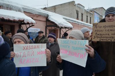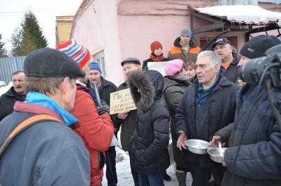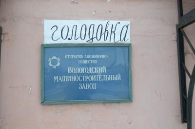 «Мы хотим есть!», «Хозяин, отдай наши деньги!», «Где власть, которая меня защитит?», «Мы против закрытия завода!» — эти и другие многочисленные лозунги держали в руках около проходной рабочие Вологодского машиностроительного завода. 4 февраля, выйдя с пустыми мисками, рабочие, доведенные до отчаяния, объявили голодовку. Им по восемь-девять месяцев не выплачивают зарплату.