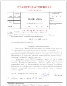 принятии соответствующих мер» врио губернатора Кубани В.И.Кондратьеву и Главе муниципального образования город Краснодар