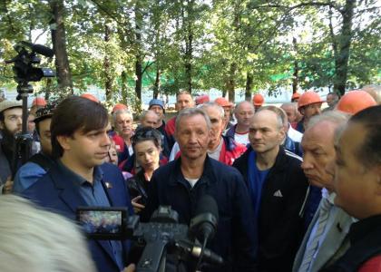 Продолжается противостояние строителей компании «Главмосстрой» со своим работодателем. Более 500 рабочих не получали зарплату с апреля. Утро для них началось со встречи с депутатами-коммунистами Валерием Рашкиным и Андреем Клычковым.