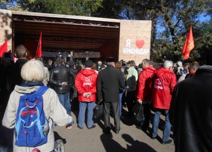 Краснодарское отделение КПРФ активно поддержало рабочих предприятия. Активисты Компартии присоединились к митингующим. Акция сопровождалась использованием коммунистической символики: над собравшимися развевались красные знамена, на сцене был растянут транспарант с лозунгом "Пролетарии всех стран, соединяйтесь"!
