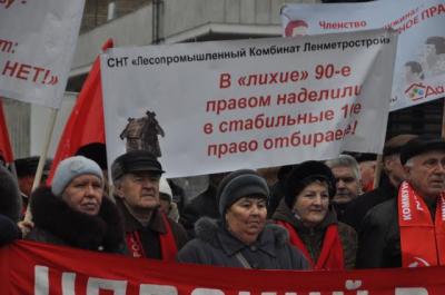 уже третий за последнее полугодие проведенный ленинградскими коммунистами митинг в поддержку прав садоводов и