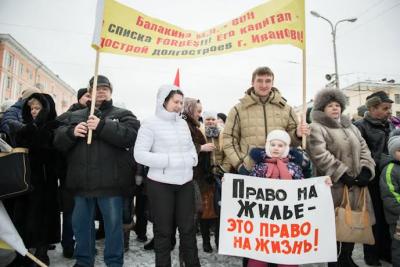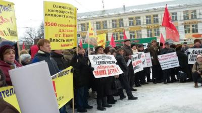 6 февраля на митинг, организованный КПРФ в рамках Всероссийской акции протеста, под красные знамена коммунистов, пришли жители города, потерявшие всякую надежду на власть и готовые к борьбе за свои попранные права. Плакаты в руках митингующих отражали настроения российского народа: «Достойную жизнь человеку труда!», «Коньков и депутаты – урежьте свои зарплаты!», «Тарифы ЖКХ под контроль народа!», «Хватит слов – начинайте строить!», «Балакина М.Д. – вон из списка FORBES!!! Его капитал – на дострой долгостроев г. Иваново!», «Почему нам не дают жить и воспитывать детей дома! г.Иваново, мкр. Рождественский», «Дядя Паша! Верни кашу внуку!», «Захребетники из «Единой России» обирают наших детей!», «За кризис должны платить богатые!», «Где наши квартиры и деньги? г.Иваново, мкр. Рождественский, литер 2», «Даешь Правительство народного доверия!», «Требуем принять Закон о Детях войны!» и т.д.