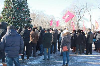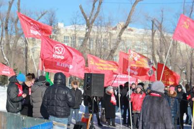 В субботу, 6 февраля, в сквере Комсомольский у новогодней елки состоялся митинг. Тюменские коммунисты провели всероссийскую акцию протеста в два этапа. 3 февраля прошел пикет напротив областной думы, а 6 февраля после разогревающего пикета в сквере Комсомольский собралось порядка двухсот человек.