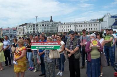 - Недавно в Казани состоялся форум, где собрали лучших архитекторов, урбанистов, транспортников и мэров со всего мира. Наши власти назвали его "Made in Kazan" - сделано в Казани. Но сегодня на митинг вышли люди. Жертвы обмана. Жертвы халатности чиновников. И это тоже "сделано в Казани" - это тоже "Made in Kazan". Хотя построены набережные, парки и скверы, красивые здания, но с этими достижениями соседствует и беззаконие. Здесь стоят люди - жертвы произвола, беззакония, попустительства чиновников. И это всё тоже "сделано в Казани". Это тоже "made in Kazan". Можно сколько угодно гордиться похвалами нашему городу ведущих урбанистов таких, как Вукан Вучик, но и дела таких людей, как Рашид Аитов, Анатолий Ливада - это тоже "made in Kazan". Можно сколько угодно гордиться новыми зданиями, но символом нашей архитектуры являются недостроенные дома и дома, которые построены на восемнадцать этажей вместо девяти. Людей обманывают в сфере, поднадзорной государству, и это не только беда дольщиков, кто попался в эту ловушку. Это ловушка для всего города!