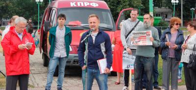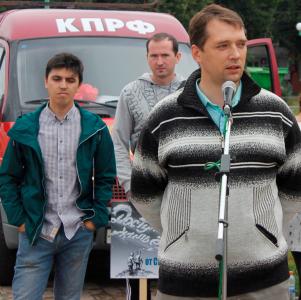 Открыл и вёл митинг А.В.Воробьев - первый секретарь Ярославского областного комитета КПРФ, руководитель фракции КПРФ в Ярославской областной Думе, кандидат от КПРФ на предстоящих выборах в Государственную Думу.
