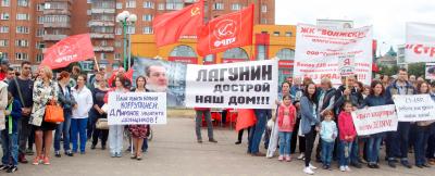 На митинге выступили представители обманутых дольщиков. Они выразили протест против "замораживания" строительства их домов, подчёркивали равнодушие областной и городской власти к их проблемам, выражали признательность фракции КПРФ в Ярославской областной Думе за помощь в отстаивании попранных прав дольщиков.