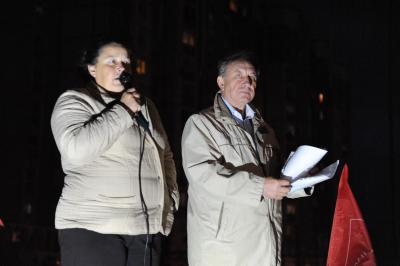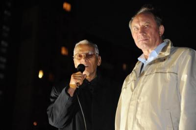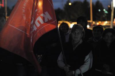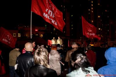 площади, где проходил митинг. Темным осенним вечером перед памятником Солдату