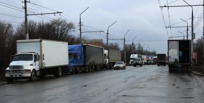 в Энгельсе около 30 большегрузов выстроились на проспекте Строителей, где их