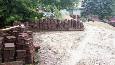 начали вскрывать тротуары и складировать брусчатку, завалив ею дорожки и