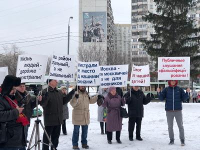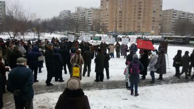В Москве 28 января состоялся митинг – уже 18-ый по счёту – против строительства дублёра МКАД практически под балконами домов по ул. 800-летия Москвы, ул. Инженерной, Бибиревской, Фестивальной, Талдомской. Жители района Восточное Дегунино протестуют против расширения этих улиц и строительства эстакады через МЖД у станции Бескудниково. Поддержать их требования пришли депутаты-коммунисты Валерий Рашкин (Государственная дума) и Николай Зубрилин (Московская городская дума).