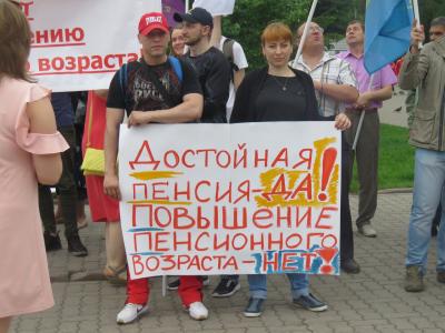- Недавно мы проводили молодежный форум, где обменивались мнениями, и участники, когда узнали, что повышают пенсионный возраст, захотели поучаствовать в активных действиях. - рассказал председатель Федерации профсоюзов Новосибирской области Александр Козлов. - Наша федерация профсоюзов выразила категорический протест против повышения пенсионного возраста, мы направили его Медведеву, Путину.