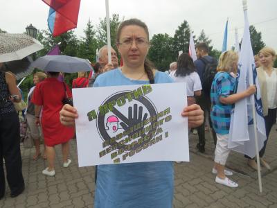 - Нам говорят – на Западе же уходят на пенсию в 65. Да, уходят, но ни получают перед пенсией приличную зарплату, на которую можно не только существовать, но и жить, и хорошо питаться, и медицинские услуги дополнительные получать, и они уходят на пенсию здоровые. А у нас в предпенсионном возрасте человек получает маленькую зарплату и медицинские услуги низкого качества, - возмущаются участники пикета.