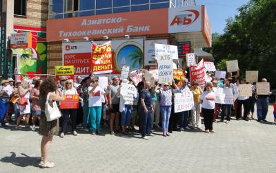 11 июля владельцы векселей «Финансово-торговой компании» (ФТК) вышли на пикет к банку АТБ в Благовещенске. В районе перекрестка улиц Ленина - Кузнечная собралось около 200 человек. В пикете приняли участие обладатели «ценных» бумаг, в том числе из Свободного, Райчихинска, Завитинска. Люди требовали у финансовой организации вернуть вложенные деньги.