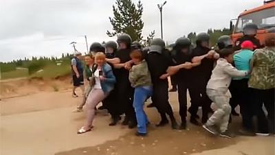 свалки, среди которых было немало женщин, пытались заблокировать въезд