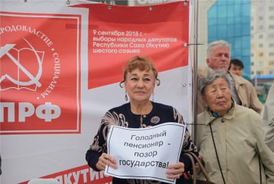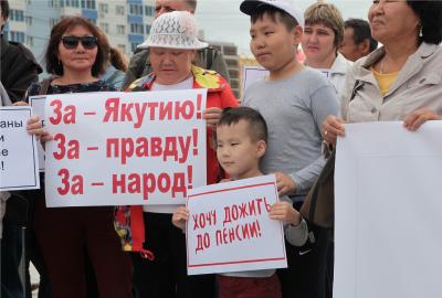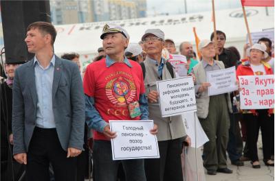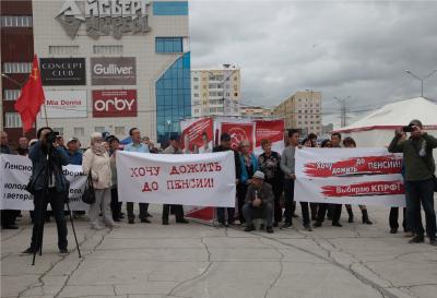 В Якутске 28 июля в рамках Всероссийской акции протеста против повышения пенсионного возраста состоялся митинг коммунистов и сторонников КПРФ. По сравнению с предыдущими акциями на митинг собралось немало народу — до 1000 человек, в основном представители рабочего класса.