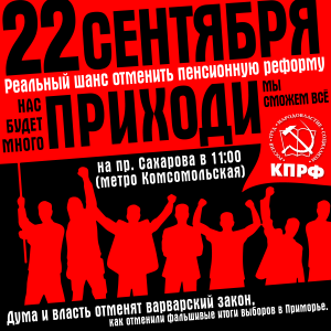 Мы призываем всех 22 сентября выйти на Общероссийскую акцию за отмену пенсионной реформы!