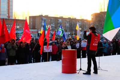 на морозную погоду в Сыктывкаре на митинг, организованный Коми рескомом