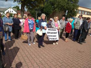 В выходные в городе Славске Калининградской области на центральной площади собрались неравнодушные жители, чтобы выразить протест против существующей социально-экономической политики действующей власти, в частности против снижения закупочных цен на молоко у населения, против повышения цен на топливо, против варварской мусорной реформы, против безработицы.