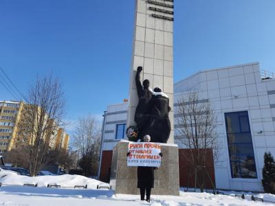 В Тюмени место проведения пикета было выбрано неслучайно. Это памятник жертвам колчаковского террора, который возведен на братской могиле 600 расстрелянных крестьян, отказавшихся воевать на стороне Колчака, против Советской власти.