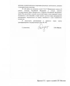 О результатах рассмотрения и принятых мерах прошу проинформировать Государственную Думу ФС РФ.