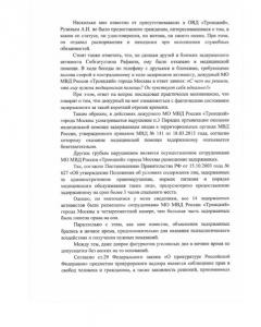 От каких-либо пояснений сотрудники полиции также отказывались, просто игнорируя собравшихся у здания ОВД адвокатов, друзей и близких задержанных. Данные нарушения прав задержанных происходили по прямому указанию присутствовавшего начальника МО МВД России «Троицкий» Рузина А.И, который находился в гражданской одежде и отказывался представиться.
