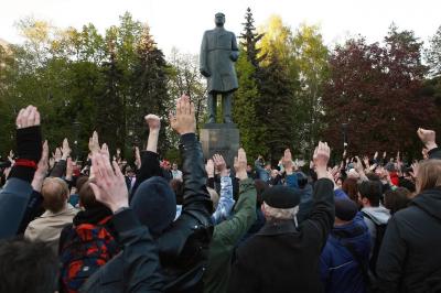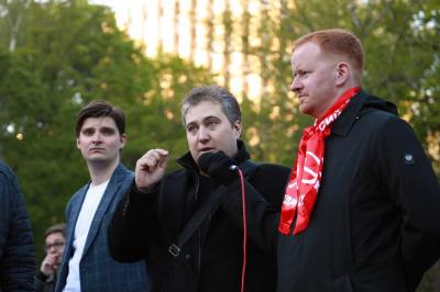 «Фашизм не пройдет!», — заявил Осин. Присутствующие на встрече с депутатами немедля подхватили лозунг молодого ученого. «Фашизм не пройдет!» – еще три раза с гордостью прокричала Миусская площадь.