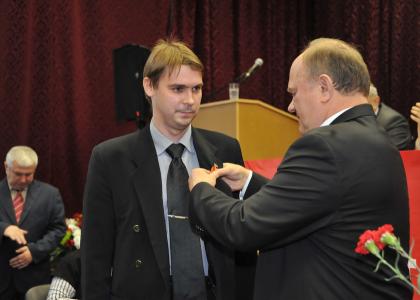 Лидер российских коммунистов Г.А. Зюганов вручил грамоты и ценные призы отличившимся комсомольским активистам. После этого состоялось вручение наград за заслуги перед партией группе участников Съезда.