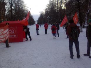 Участники пикета держали плакаты со словами протеста против принятия правительственного закона об образовании, раздавали листовки, газеты и красочные календари КПРФ на 2013 год.