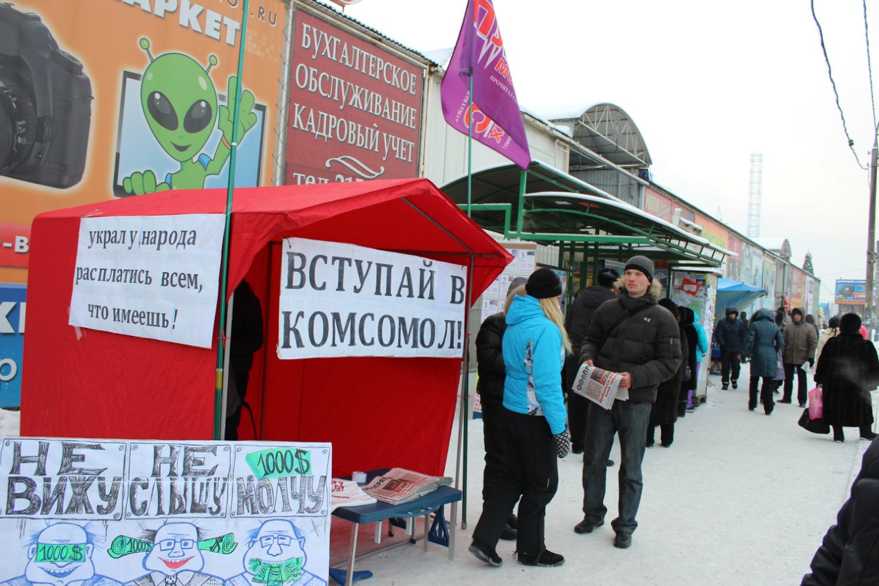 9 декабря 2012 г. красноярские комсомольцы провели акцию с целью выражение гражданской позиции по вопросу Международного дня борьбы с коррупцией.