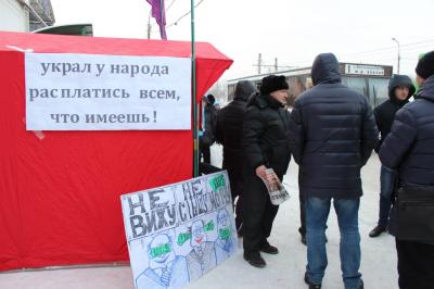 Акция-пикет прошла в районе остановки общественного транспорта "ДК КрасТЭЦ" в Ленинском районе города. Были изготовлены плакаты с надписями "Конфискация имущества и тюрьма - для всех воров и жуликов!", "Украл у народа - расплатись всем, что имеешь!".