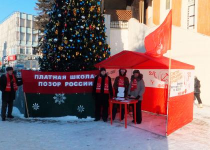 Мероприятие прошло под лозунгами: «Платная школа – позор России!», «Знание – сила, ЕГЭ – лотерея!», «Советское образование – лучшее в мире, Болонская система – путь в болото!», «Учителю и педагогу – достойную зарплату!».