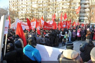 Более 300 воронежцев, несмотря на сильный мороз, собрались по призыву Коммунистической партии Российской Федерации на митинг, проходивший на Никитинской площади в рамках Всероссийской акции протеста против антинародных реформ в системе образования.