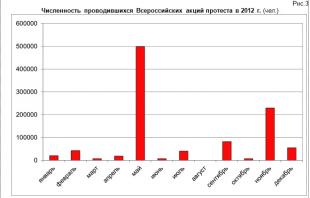После волны декабрьских массовых акций в протестной активности в начале 2012 года наблюдался спад, потом значительный всплеск. В январе в протестных мероприятиях приняло участие меньше всего человек за пятилетний период мониторинга. Февральские же показатели, наоборот, самые значительные за период 2008-2012 г.г. За счет проведенных крупнейших акций за честные выборы уровень февраля «пикового» 2009 года был превышен почти в 2 раза (рис.1).