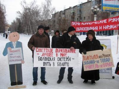 Коммунисты и комсомольцы Бийска и Бийского района 15 января на площади 9 января провели акцию протеста против нового закона "Об образовании", принятого Госдумой, - сообщили бийские коммунисты. Комсомольцы подготовили два макета школьников, которые «просили» подать им на образование, и прекратить реформы по развалу образования в России.