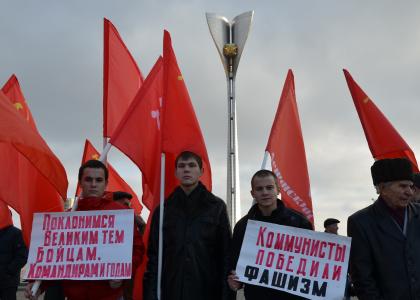 После митинга коммунисты почтили минутой молчания память героев-освободителей и возложили цветы к вечному огню, который перед началом митинга еще горел, а к его окончанию был уже выключен городскими властями.