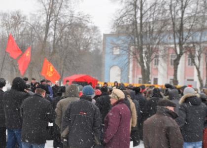 В итоге под красные флаги у памятника В.И.Ленину на Аллее Героев в этот день встали около 300 человек. Со вступительным словом выступил первый секретарь горкома партии, депутат городского Собрания Виктор Тарасов. В его приветствии прозвучала уверенность: такая явка в такой снег, сопровождаемый ураганным ветром, говорит о том, что этот вопрос – весьма болезненный для населения города.
