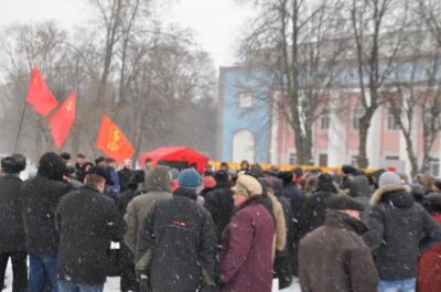 В итоге под красные флаги у памятника В.И.Ленину на Аллее Героев в этот день встали около 300 человек. Со вступительным словом выступил первый секретарь горкома партии, депутат городского Собрания Виктор Тарасов. В его приветствии прозвучала уверенность: такая явка в такой снег, сопровождаемый ураганным ветром, говорит о том, что этот вопрос – весьма болезненный для населения города.