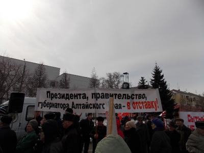 Также участники краевой акции протеста в Барнауле требуют прямых выборов губернатора края. И передачи власти Правительству народного доверия, без образования которого дальнейшее разрушение страны невозможно остановить. Резолюция направлена во все названные органы власти.