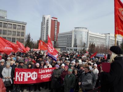 Для участия в краевом митинге на площади Ветеранов в Барнауле собралось около 500 человек, коммунисты, комсомольцы, представители общественных организаций «Дети войны», Всероссийского женского союза «Надежда России», РКСМ. В акции приняли участие коммунисты от 19 территорий края: г. Рубцовск, Бийск, Заринск, Камень-на-Оби, Новоалтайск, Бийский, Залесовский, Целинный, Поспелихинский районы и других районов и городов.