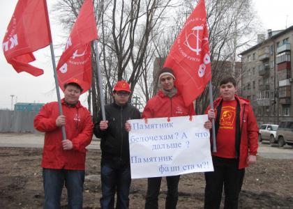 Напомним, что история с установкой данного памятника началась еще в 2009 году. Именно тогда группа во главе с историками, краеведами и журналистами вышла с инициативой увековечить память погибших в гражданскую войну чехословацких легионеров. Эта инициатива вызвала большой резонанс в области, именно поэтому проект сначала «заморозили». В начале 2013 года появилась информация, что памятник установят до июня этого года. Причём, словно в насмешку, заложили фундамент под будущий монумент в нескольких метрах от давно уже существующей стелы в память расстрелянных красноармейцев. Получается, что рядом окажутся два памятника — палачам и их жертвам. И всё это на улице с символическим названием — Красноармейская. Именно поэтому комсомольцы и коммунисты решили начать ежедневную бессрочную протестную акцию.