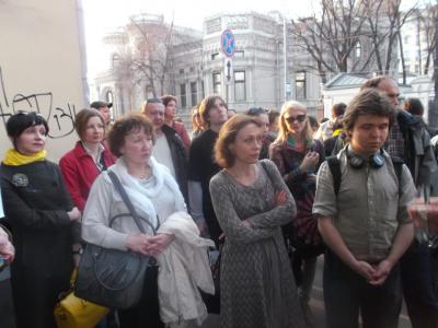 Как сообщил собравшимся депутат Госдумы от фракции КПРФ Владимир Родин, три недели назад он направил письмо в правоохранительные органы с требованием остановить разрушение здания, однако никакой реакции не последовало. «Работы ведутся воровским способом, по субботам и воскресеньям. За это время активистами «Архнадзора» неоднократно вызывались наряды отдела внутренних дел района Арбат, которые в одних случаях останавливали работы, в других не реагировали, что дает нам все основания утверждать, что власти игнорируют мнение жителей и обращение депутата», - заявил коммунист.