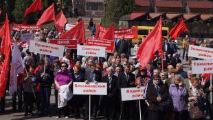 Более 1000 пензяков собралось сегодня на митинг рабочей солидарности. Сегодня вся областная партийная организация была представлена на Советской площади. Каждый район области можно было узнать по своей табличке. Коммунисты собрались на Фонтанной площади и кумачовой колонной направились к кинотеатру Родина. Как обычно не обошлось без мелких пакостей со стороны власти - на маршруте колонны неизвестные лица разрушили дорожное покрытие. Такие мелкие подлости говорят лишь об одном - власть боится нас, но не имея способности серьезно помешать коммунистам, вынуждена опускаться до таких грязных трюков. Перефразируя известную поговорку остается лишь сказать "Власть подличает, а коммунисты неуклонно идут к социализму".