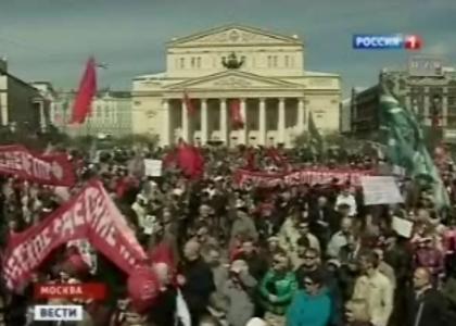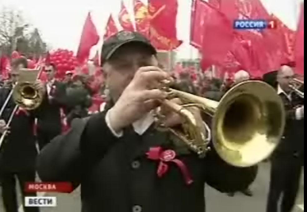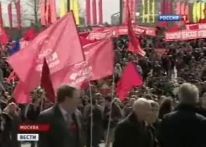 Телеканал "Россия" в вечерней программе "Вести" показал сбойку о первомайских шествиях в Москве. Отмечая массовость шествия КПРФ ведущий программы отметил, что с Кулужской площади колонна КПРФ вышла в пятитысячном составе, а до памятника Марксу коммунисты уже дощли 15-тысячной колонной.